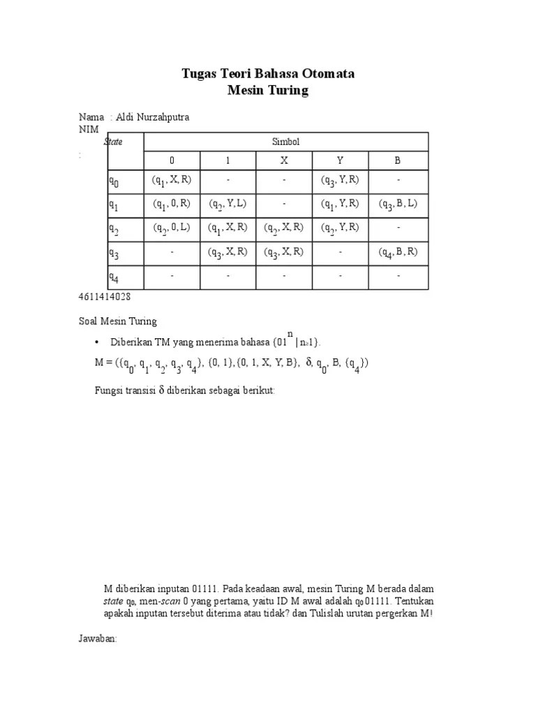 Pada penerapan ini ditekankan mengenai cara agar . Kita ingin membuat mesin deterministic finite automata yang menerima bahasa . Q = {q0, q1, q2}. Ekspresi reguler memberikan suatu pola (pattern) atau template untuk / string dari suatu bahasa. Contoh penerapan teori bahasa dan automata adalah penggunaan algoritma greedy. Konfigurasi dfa contoh 1 secara formal adalah sebagai berikut : Form pengolahan string dengan contoh output. Definisi finite state automata (1) bukanlah mesin fisik tetapi suatu model matematika dari suatu sistem yang menerima input dan output diskrit. Penjelasan teori juga disertai contoh yang juga . Pintu putar yang dioperasikan dengan koin; 1 ekspresi regular2 sebuah bahasa dinyatakan regular jika terdapat finite state automata yang dapat menerimanya. Fsm dipelajari di bidang teori automata yang lebih umum. Seorang petani dengan seekor serigala, kambing dan seikat rumput berada pada suatu sisi sungai.